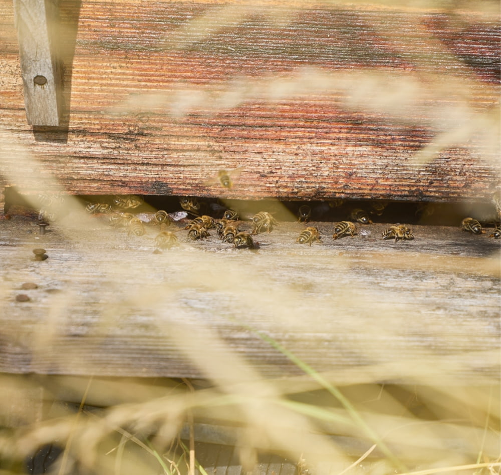 Nous apportons un grand soin à leur bien-être en semant des prairies fleuries, en plantant des essences mellifères, en créant des bassins d’eau et en luttant contre ses prédateurs (frelons asiatiques notamment).