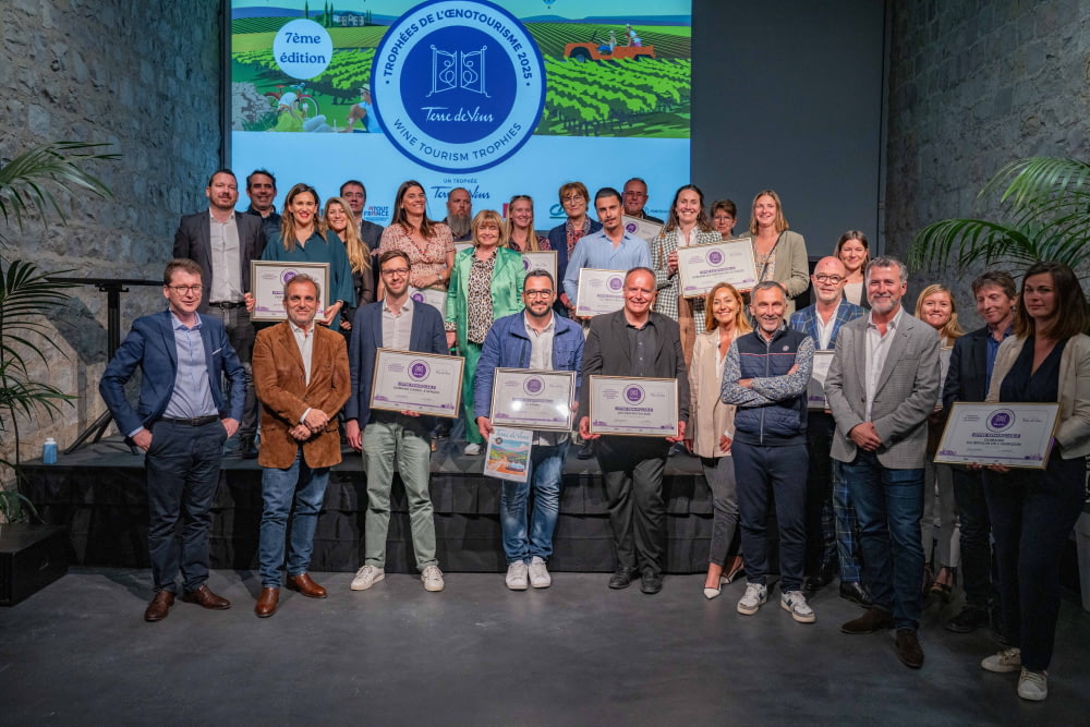 Nous remercions chaleureusement le magazine Terre de Vins et Atout France, qui à travers les Trophées de l’Œnotourisme, mettent en lumière les initiatives les plus inspirantes du vignoble français. Cette récompense est aussi la vôtre : visiteurs fidèles, curieux de passage, partenaires engagés, et équipes passionnées !
